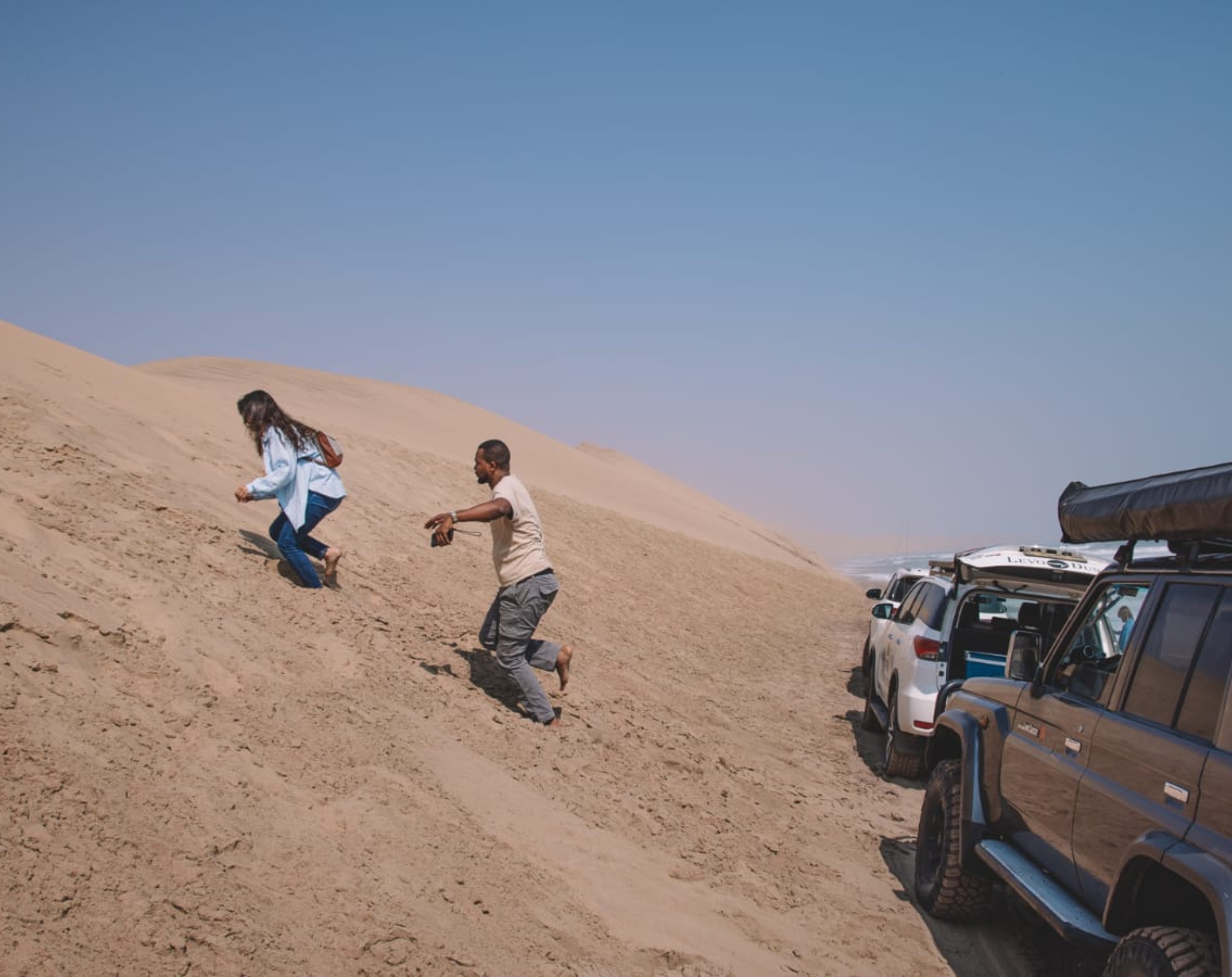 No terceiro dia, a aventura continua com um cruzeiro de catamarã, ideal para avistar golfinhos, focas e pelicanos, desfrutando de um almoço de frutos do mar a bordo. À tarde, a adrenalina toma conta com um emocionante raid 4x4 nas dunas da Sandwich Harbour, subindo e descendo enormes dunas e apreciando a fauna e paisagens únicas deste ecossistema costeiro.